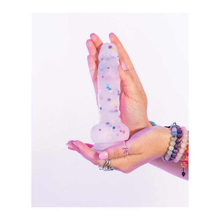 We all want a party in our pants, and COCK-A-PALOOZA is here to deliver. This FUNFETTI, confetti filled dildo is sure to provide an intense explosion! Cock-A-Palooza is a silicone dildo that is perfect for vaginal or anal play. Cock-A-Palooza’s suction cup base makes play time secure and pleasurable, whether using the base as a handle or sticking to a flat surface for a wild ride! Cock-A-Palooza is also harness compatible, making this a great toy for partner play.